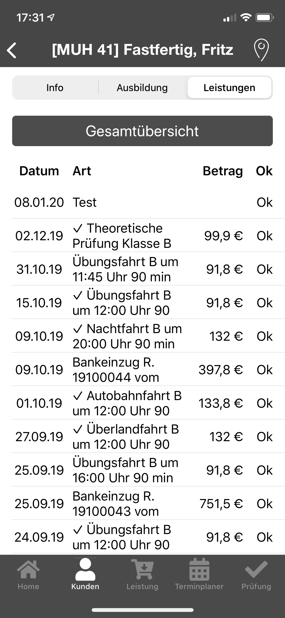 Nutze die Rubrik "Termine" um dir alle geplanten Fahrstundentermine des Kunden anzeigen zu lassen!